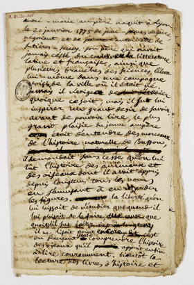 Vers 1824, Ampère entreprend une autobiographie dont la chemise 326 conserve plusieurs versions. Il y parle de lui-même à la troisième personne.