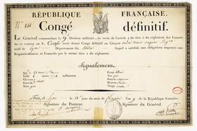 Son congé définitif donne son signalement succinct à l’âge de 25 ans (le 21 frimaire an IX correspond au 12 décembre 1800).