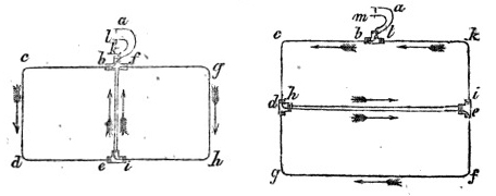 ]. Pour Ampère, cela "indique une répulsion pour chaque fil entre le courant établi dans le mercure et son prolongement dans le fil lui-même" et il conclut : "cet accord de l'expérience est une grande preuve en faveur de [mes] formules".