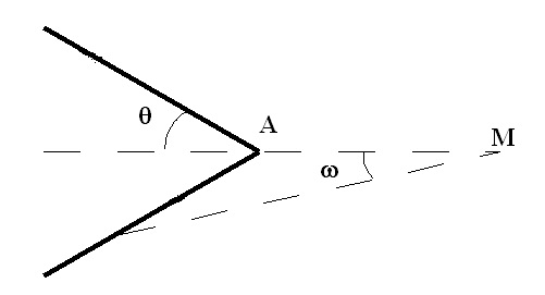 La force exercée par la tranche située en N dépend encore de l'angle ω, suivant une fonction qui reste à déterminer. Pour préciser cette fonction, Biot réalise une deuxième série d'expériences. Il mesure la force, exercée sur le pôle M, par un fil conducteur infini formant un angle variable de sommet A (fig. 3). Il en conclut que cette force est proportionnelle à l'angle θ .